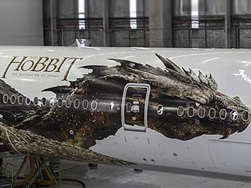 New Zealand's national airline unveiled a giant image on Monday of the dragon Smaug on one of its planes to celebrate the premiere of the second movie in the Hobbit trilogy.