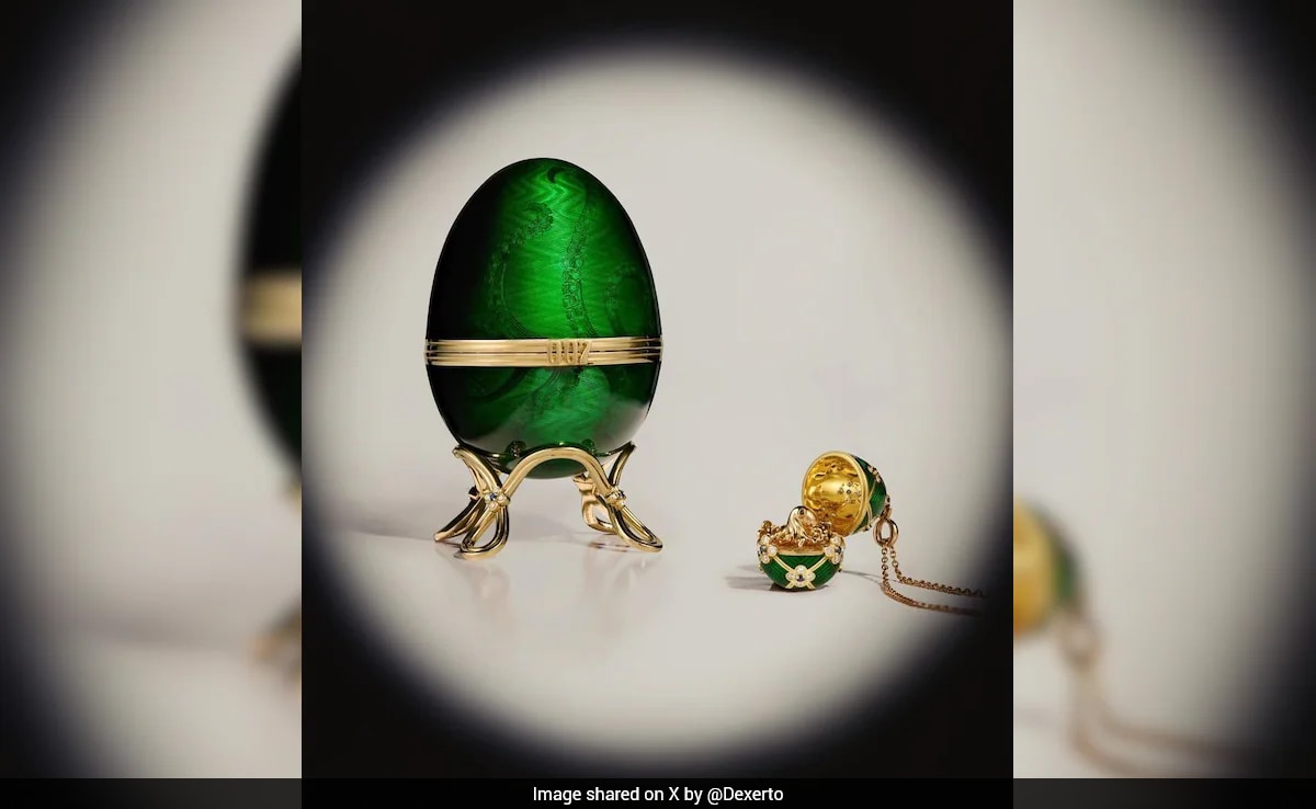 "The exterior of the egg closely follows the design of the Faberge egg featured in the film Octopussy, with a beautiful 18k gold lattice framework which is delicately set with blue sapphires and white diamonds in a floral-like design," reads an online description.
