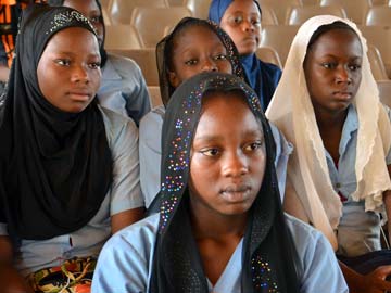 Women sit as they gather on May 8, 2014 during a meeting called by Congafen (the Coordination of the NGOs and Nigerien women associations) at the Youth house in Niamey, western Niger, to ask the United Nations (UN) to pursue in justice Boko Haram Islamist