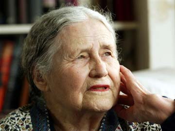 In this April 17, 2006 file photo, Doris Lessing, 86, sits in her home in north London.