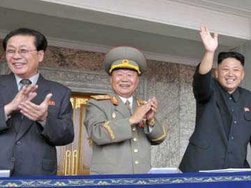 This file picture taken by North Korea's official Korean Central News Agency (KCNA) on September 9, 2013 and received on September 10, 2013 shows North Korean leader Kim Jong-Un (R), accompanied by his uncle Jang Song-Thaek (L), waving as he inspects a ma