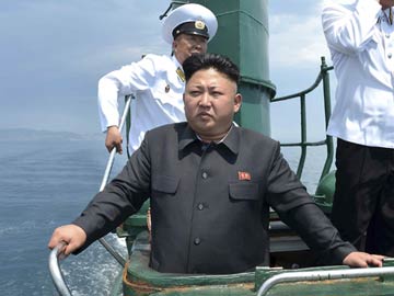 North Korean leader Kim Jong Un (front) stands on the conning tower of a submarine. (Reuters)