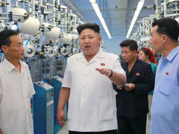 This undated picture released from North Korea's official Korean Central News Agency (KCNA) on August 7, 2014 shows North Korean leader Kim Jong-Un (C) inspecting the Pyongyang hosiery factory in Pyongyang.