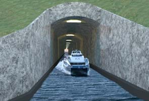 Tunnels already exist for barges, for example in France's Canal du Midi, but the Stad tunnel will be the world's first that can accomodate large cargo and passenger vessels up to 16,000 tonnes.