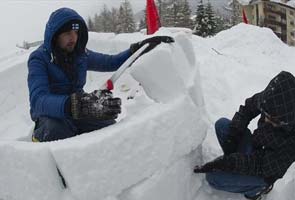 In preparation for the economic summit of world leaders, which begins on Wednesday in Davos-Klosters, Switzerland - where daytime temperatures have hovered around 23 degrees Fahrenheit and dipped to around 10 degrees at night with a dusting of snow - protesters are carving out igloos from the packed powder.