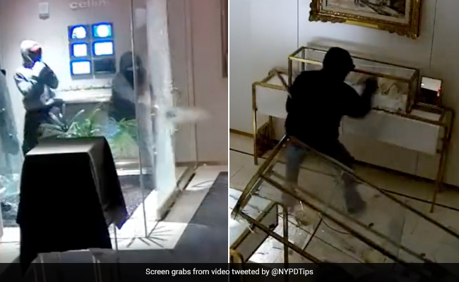 A dramatic video showing three thieves smashing their way into a high-end jewellery store in New York is gaining traction on social media. The incident took place on Saturday at Cellini jewellers in the 400 block of Park Avenue in Midtown Manhattan. The New York Police Department shared the clip on Twitter, saying that the trio of robbers got away with more than $500,000 in merchandise.