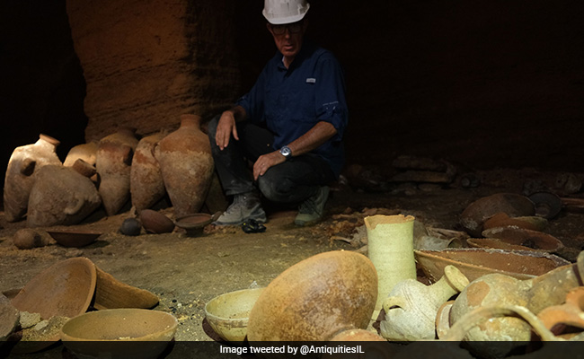 Israeli archaeologists on Sunday announced the "once-in-a-lifetime" discovery of a burial cave from the time of ancient Egyptian Pharaoh Rameses II, filled with dozens of pottery pieces and bronze artefacts.