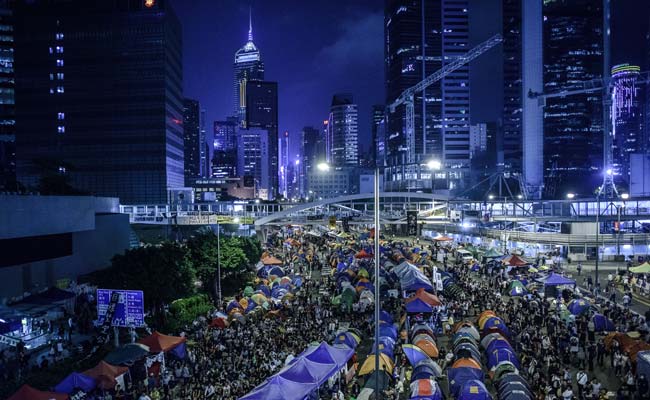 Pro-democracy protesters gather at the main protest site in Hong Kong on October 24, 2014. (Agence France-Presse)