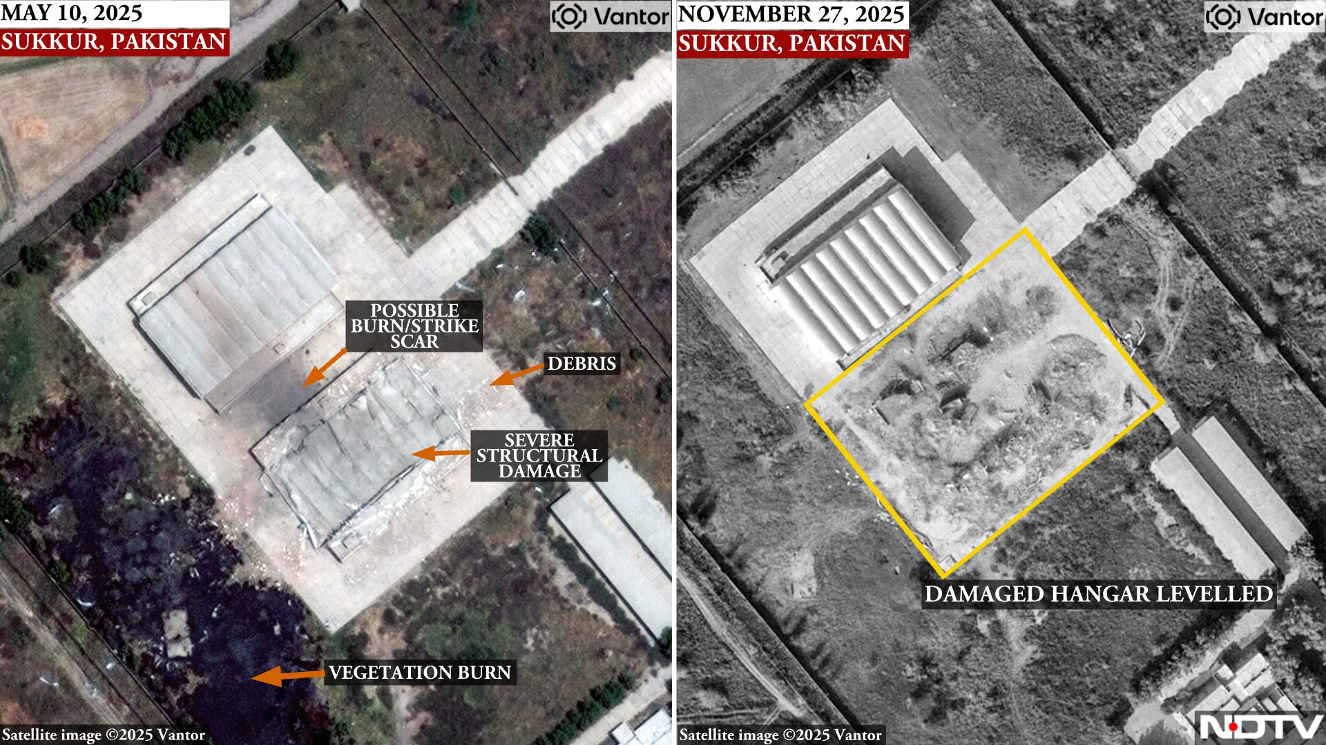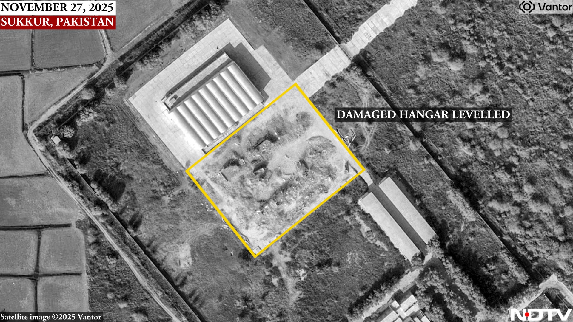 New high-resolution satellite imagery with NDTV indicates that Pakistan has cleared out debris of a hangar at its airbase in Sukkur, struck by the Indian Air Force during Operation Sindoor on May 10 this year.