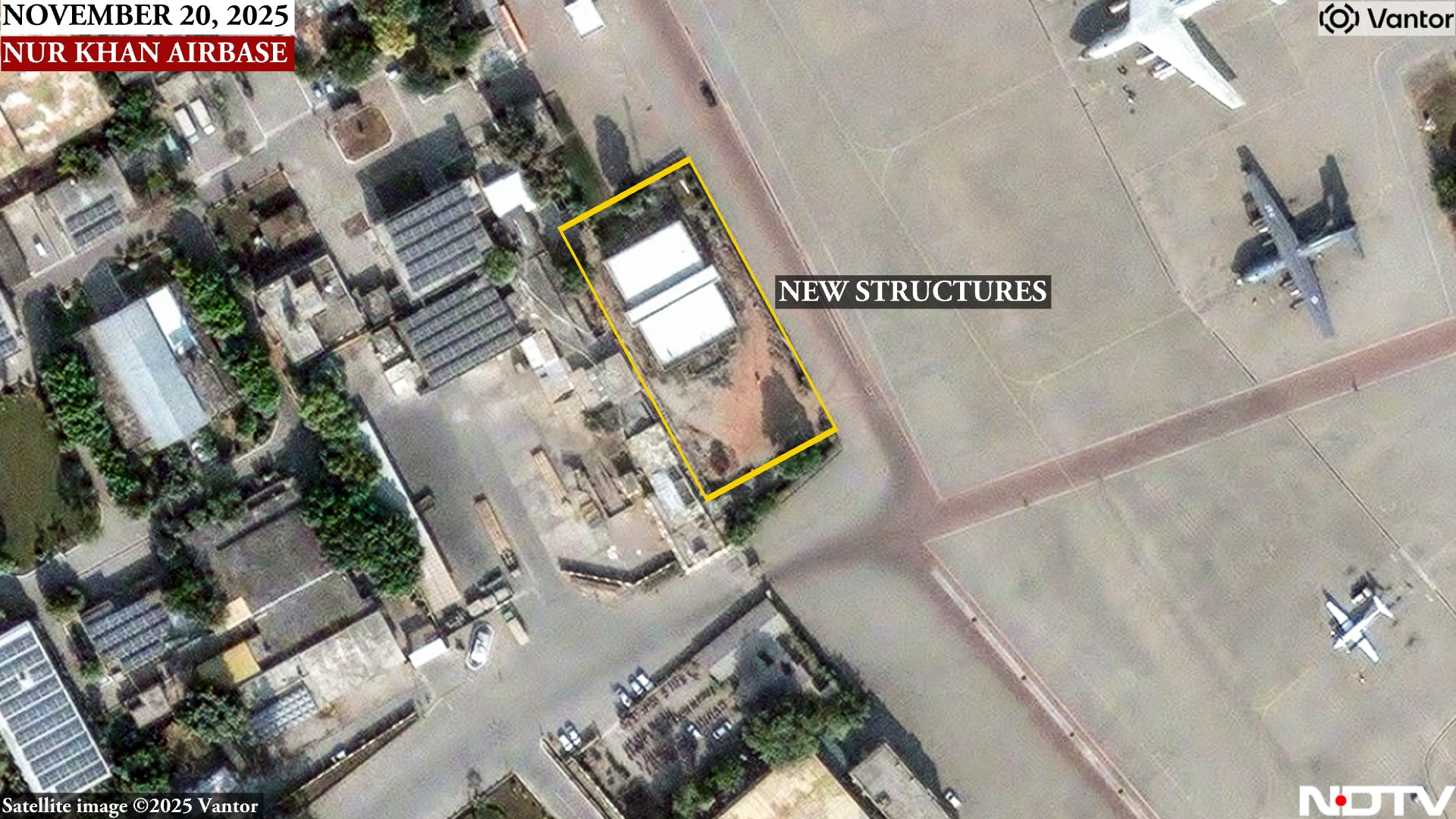 "India's strike on Nur Khan during the May 2025 conflict targeted specialised military vehicles at the airport but also led to heavy collateral damage to adjacent infrastructure. The buildings around the impact site were leveled and have since been replaced by a fresh structure. Interestingly, while the new construction occupies the previous building's foundation, its design diverges from the demolished structures. This newly built structure is about 20×25 meters and appears to be composed of two independent but adjoining sections," Damien Symon said.
