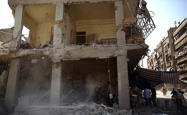 They said more bodies were believed to be under the rubble of buildings occupied by dozens of families in the city of Douma, about 15 km (10 miles) northeast of Damascus, with dozens of victims taken to field hospitals, many seriously wounded.