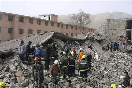 The destruction of schools was an eerie echo of the massive magnitude-7.9 quake that hit neighboring Sichuan province two years ago, leaving nearly 90,000 people dead or missing. Thousands of students among the dead were killed when their schools collapsed. Poor design, shoddy construction and the lax enforcement of building codes were found to be rampant.