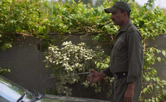 A Pakistani security guard uses an explosives detector to search a vehicle in Islamabad. (AFP)