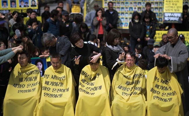 Around 50 mothers and fathers of victims of last year's South Korean ferry disaster had their heads shaved in central Seoul today, to push demands for an effective and genuinely independent inquiry.