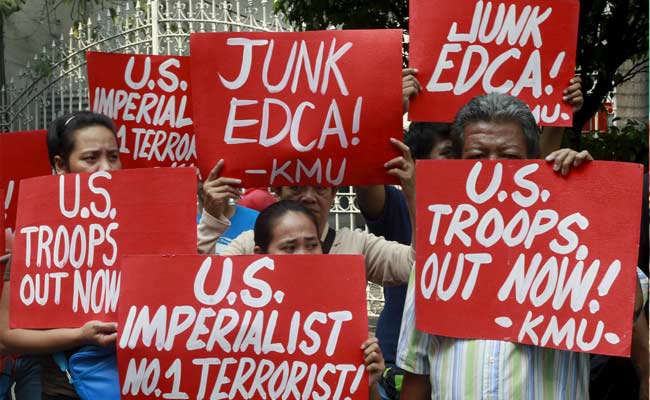 Dozens of anti-U.S. activists held protests outside the court denouncing the deal as a de facto basing agreement that would make the Philippines a launching pad for military intervention in the region.