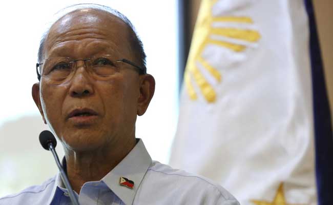 Philippine Defense Secretary speaks during a press conference at military headquarters, north of Manila.