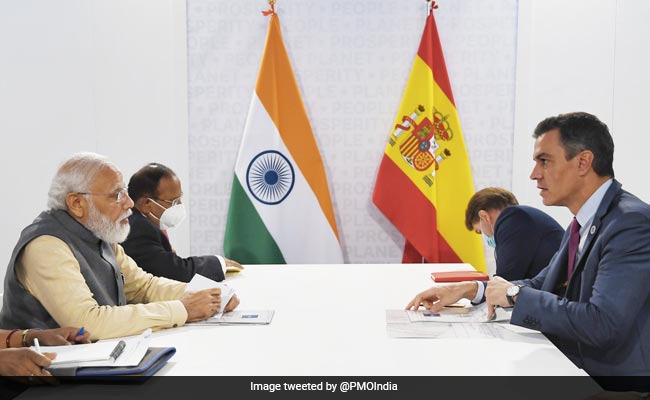 Prime Minister Narendra Modi on Sunday met his Spanish counterpart Pedro Sanchez on the sidelines of the G20 summit in Rome and the two leaders had "fruitful" talks on ways to deepen bilateral ties.