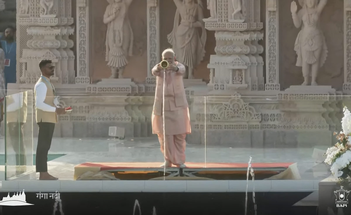 PM Modi also participated in a 'global aarti (prayer)', which was performed simultaneously at over 1,200 temples built by BAPS. Before inaugurating the temple, he offered water in the virtual Ganga and Yamuna rivers at the temple and met people from different religions who played a role in its construction.