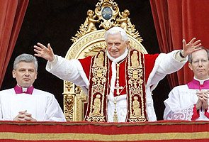 Benedict, who was seated on a golden throne in the central window of St. Peter's Basilica, also singled out Catholics in China, "that they may not lose heart through the limitations imposed on their freedom of religion and conscience" and that they "may keep alive the flame of hope."