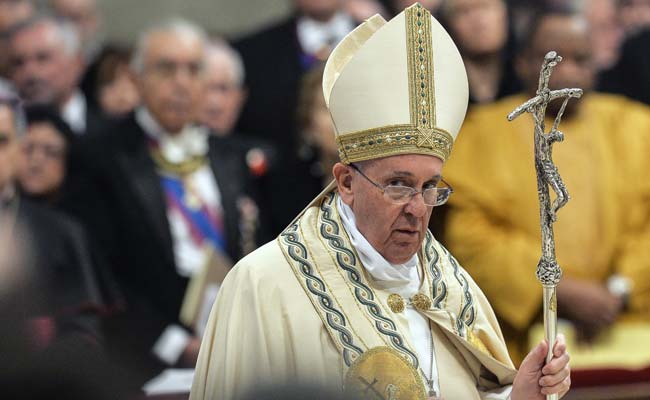 Pope Francis leaves after celebrating a mass of First Vespers in St Peter Basilica at the Vatican, on April 11, 2015 .(AFP Photo)