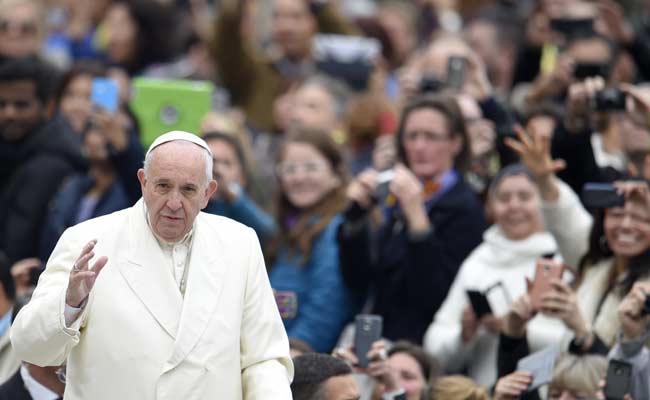 Pope Francis stands during his weekly general audience in St Peter's square on November 18, 2015 at the Vatican. (AFP)