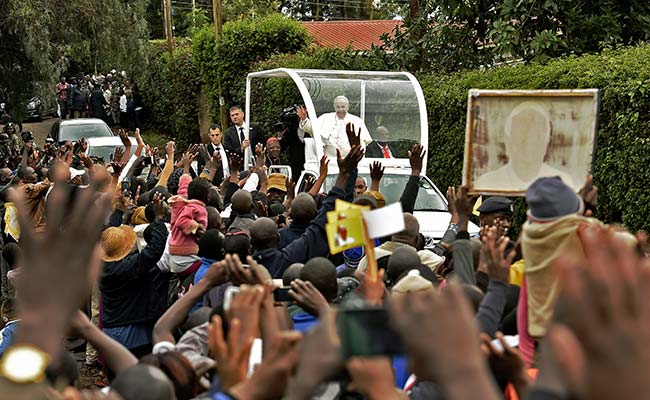 The 78-year-old pontiff was given a rapturous welcome as he arrived in Kangemi, home to more than 100,000 people who live in shacks without sewerage, including 20,000 who belong to the local Catholic parish.