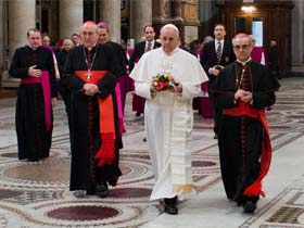 Francis asked Tscherrig "to let the bishops and the faithful know they did not have to make the costly journey to Rome and could instead do an act of charity, of solidarity with the poor," Vatican spokesman Federico Lombardi said on Friday.