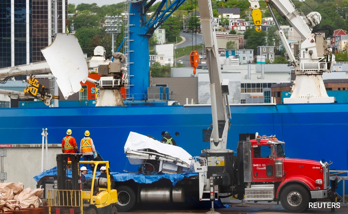 Television images showed what appeared to be the Titan sub's nose cone and a side panel with electronics and wires hanging out being hoisted from a ship onto a flatbed truck at a Canadian Coast Guard terminal in St. John's, Newfoundland.