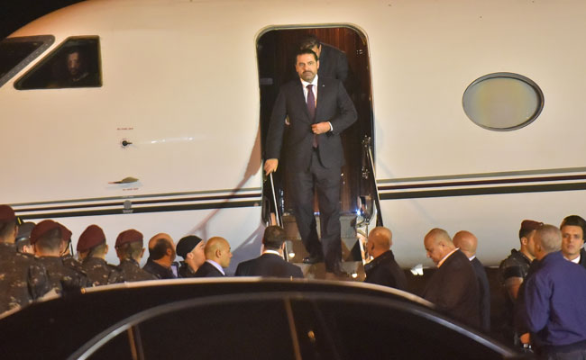 Saad Hariri's plane touched down at Beirut International airport shortly before midnight on Tuesday (AFP)