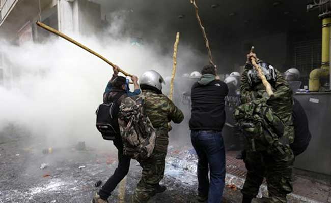 Farmers who arrived by ferry from the island of Crete earlier in the day rallied outside the ministry building, throwing tomatoes as tension escalated when police prevented them from staging a symbolic occupation of the ministry. Clashes soon broke out, with riot police using tear gas to repel protesters throwing rocks and setting rubbish dumpsters on fire.