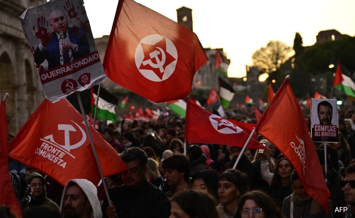 A day after a similar demonstration Wednesday evening, protesters in the capital gathered at the Colosseum and marched, slamming the far-right prime minister's support of Israel.