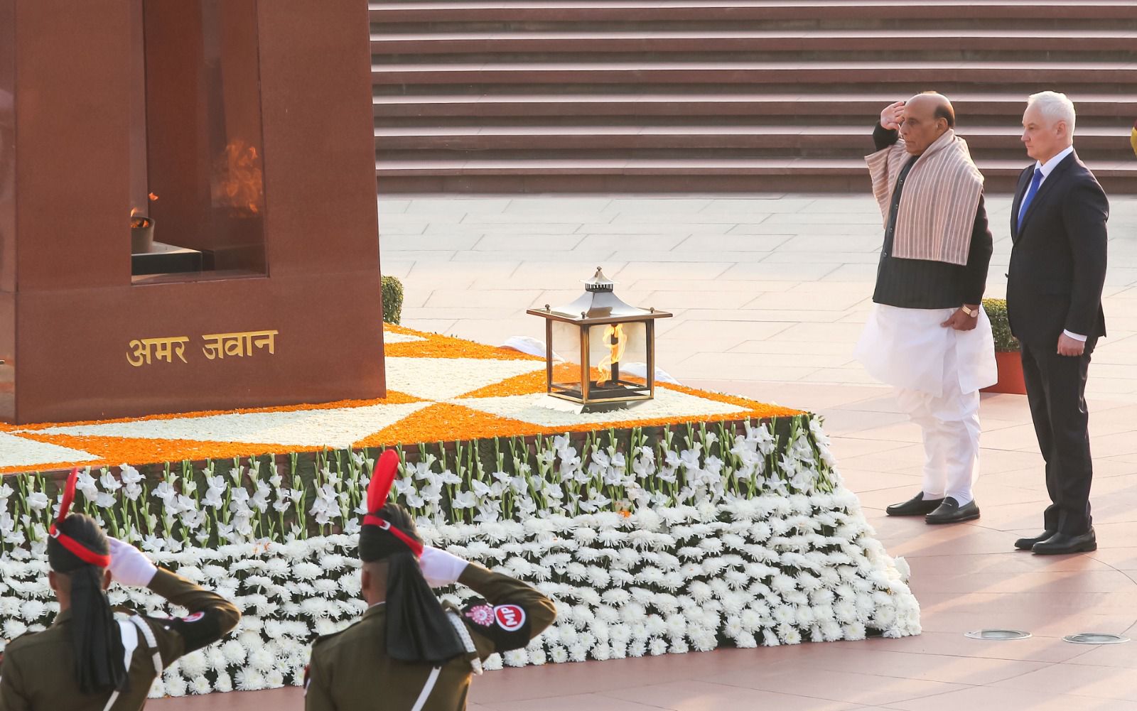 Defence Minister Rajnath Singh and his Russian counterpart Andrei Belousov on Thursday laid a wreath at the National War Memorial and pay tribute to the Indian soldiers who have made the supreme sacrifice in the line of duty.