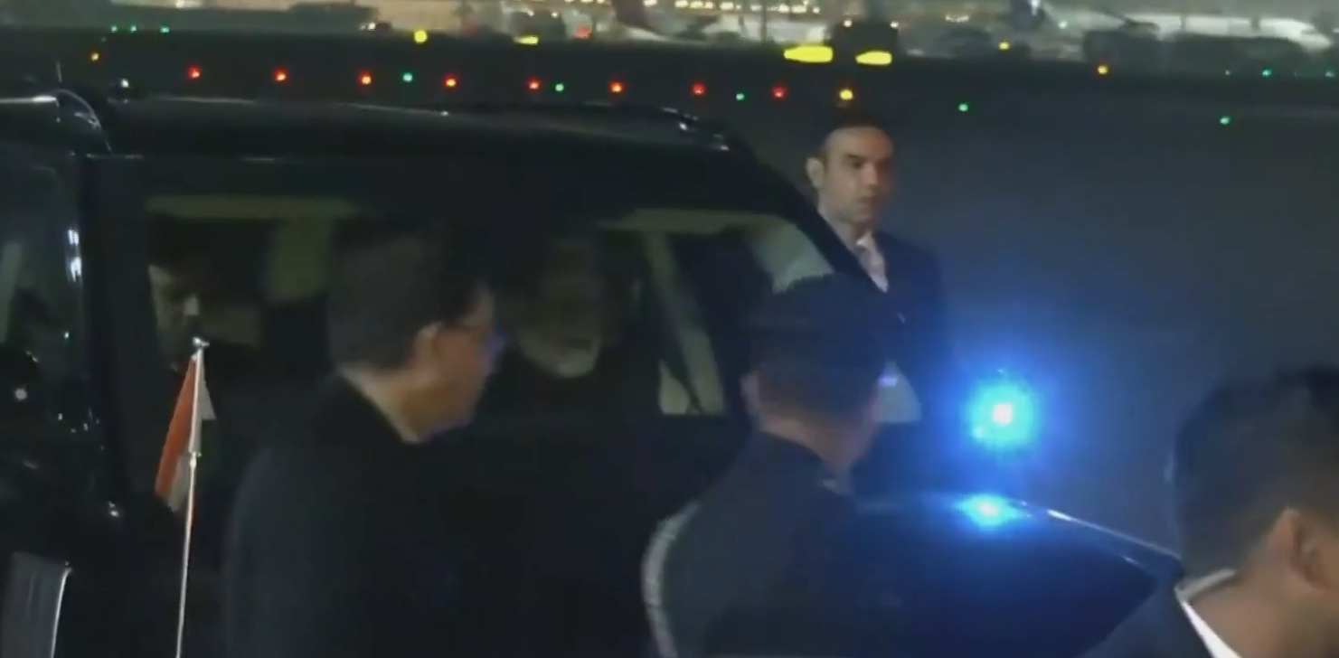 Prime Minister Narendra Modi arrives at New Delhi airport to receive Russian President Vladimir Putin.