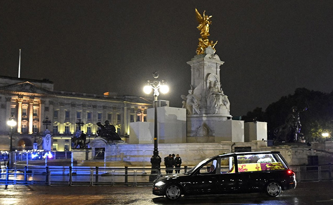 - The body of Queen Elizabeth, who died last week, will be borne on a horse-drawn gun carriage from her Buckingham Palace home to Westminster Hall. It will remain there until her funeral Monday.