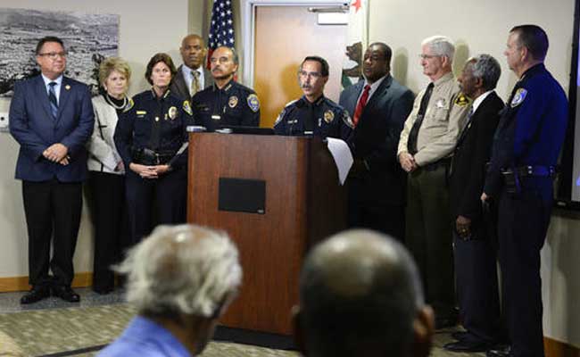 El Cajon Police Department Captain Jeffery Davis, center, speaks at a news conference. (AP Photo)