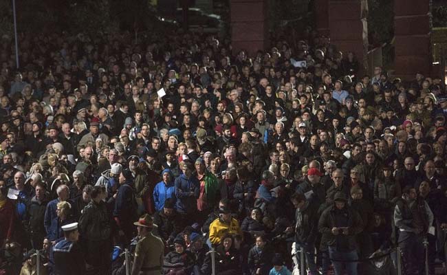 Thousands of people pack into the park to take part in the service during ANZAC day commemorations at Pukeahu National War Memorial Park in Wellington, New Zealand, on April 25, 2015. (AFP)