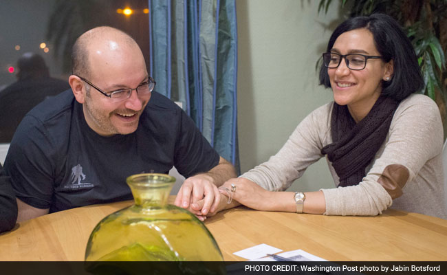 Washington Post correspondent Jason Rezaian and his wife, Yeganeh Salehi, at the Landstuhl Fisher House at the U.S. military medical center.