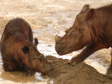 Sumatran rhinoceros Suci and her mother, Emi, at the The Cincinnati Zoo on April 18, 2005. (File pic)