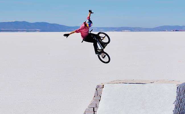 Bicycle motocross rider Daniel Dhers built ramps out of salt at the Uyuni Salt Flats in Bolivia, a high altitude desert known as the largest salt pans on the planet.