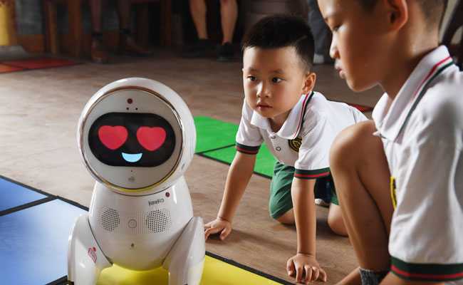 The Chinese kindergarten children giggled as they worked to solve puzzles assigned by their new teaching assistant: a roundish, short educator with a screen for a face.
