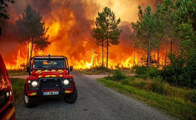 Three firefighters were injured by flames and several villages in the area were evacuated, local emergency services said on Twitter.