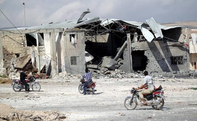 Men on motorcycles inspect a site hit by what activists said were airstrikes carried out by the Russian air force in the town of Babila in Syria, October 7, 2015. (Reuters)