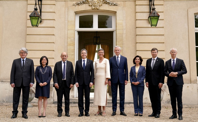Senior EU and U.S. officials convened in Paris for the second Trade and Technology Council, a forum initially seen as a transatlantic counterweight to China, but now with a clear focus also on Russia.