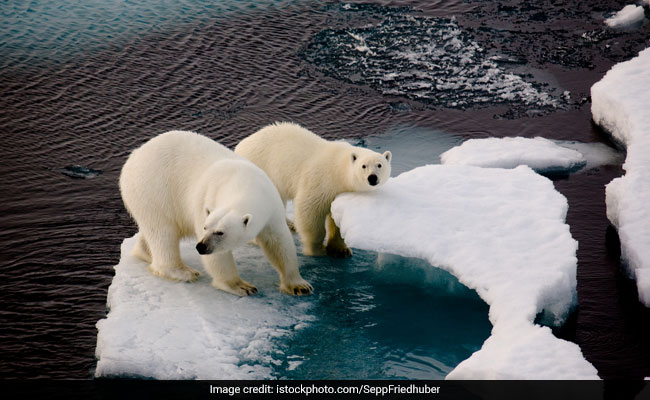 Polar bears are affected by global warming with melting Arctic ice forcing them to spend more time on land where they compete for food.