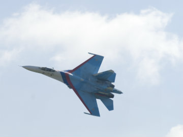 Army Col. Steve Warren, the spokesman, said the Russian Su-27 fighter flew across the nose of the U.S. Air Force RC-135U aircraft, coming within about 100 feet (30 meters), while in international airspace over the Sea of Okhotsk.