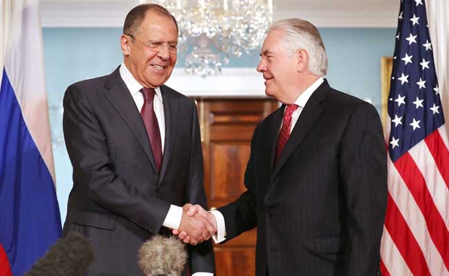 Russian Foreign Minister Sergei Lavrov with US Secretary of State Rex Tillerson in Washington DC.