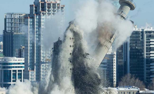 As Russia hurries to spruce up its venues for this year's soccer World Cup, the Urals city of Yekaterinburg on Saturday blew up its most famous landmark -- a rusty, half-finished Soviet-era television tower.