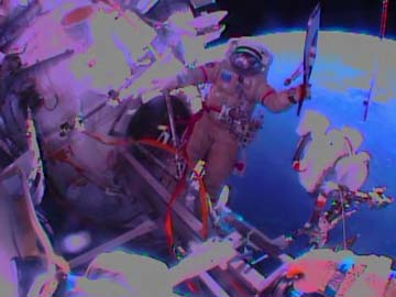 The flashy moment was captured on high-tech video and photo equipment operated by fellow cosomonaut Sergei Ryazansky, who preceded Kotov out the airlock.