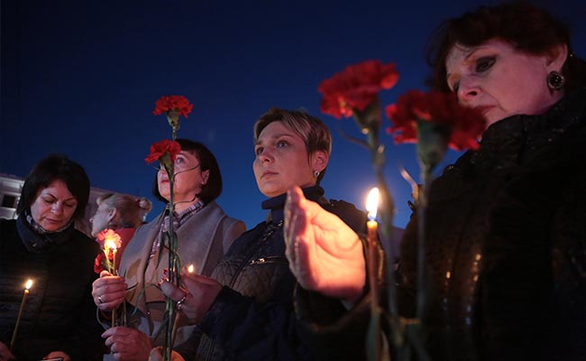 Russian flags flew at half-mast as the city observed the first of three days of mourning.