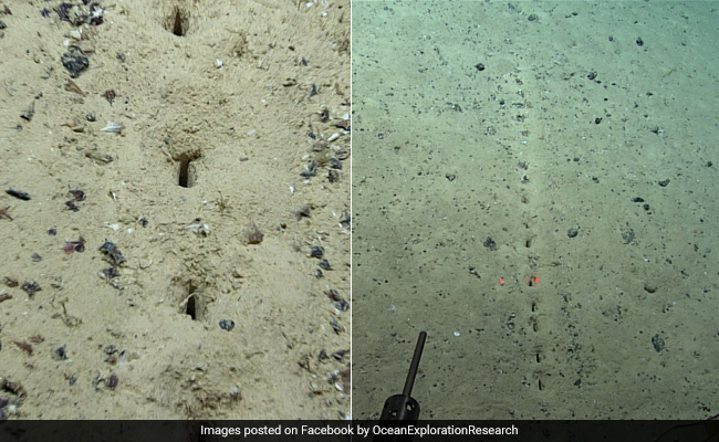 “On Saturday's #Okeanos dive, we observed several of these sublinear sets of holes in the sediment. These holes have been previously reported from the region, but their origin remains a mystery,” the NOAA said on social media.